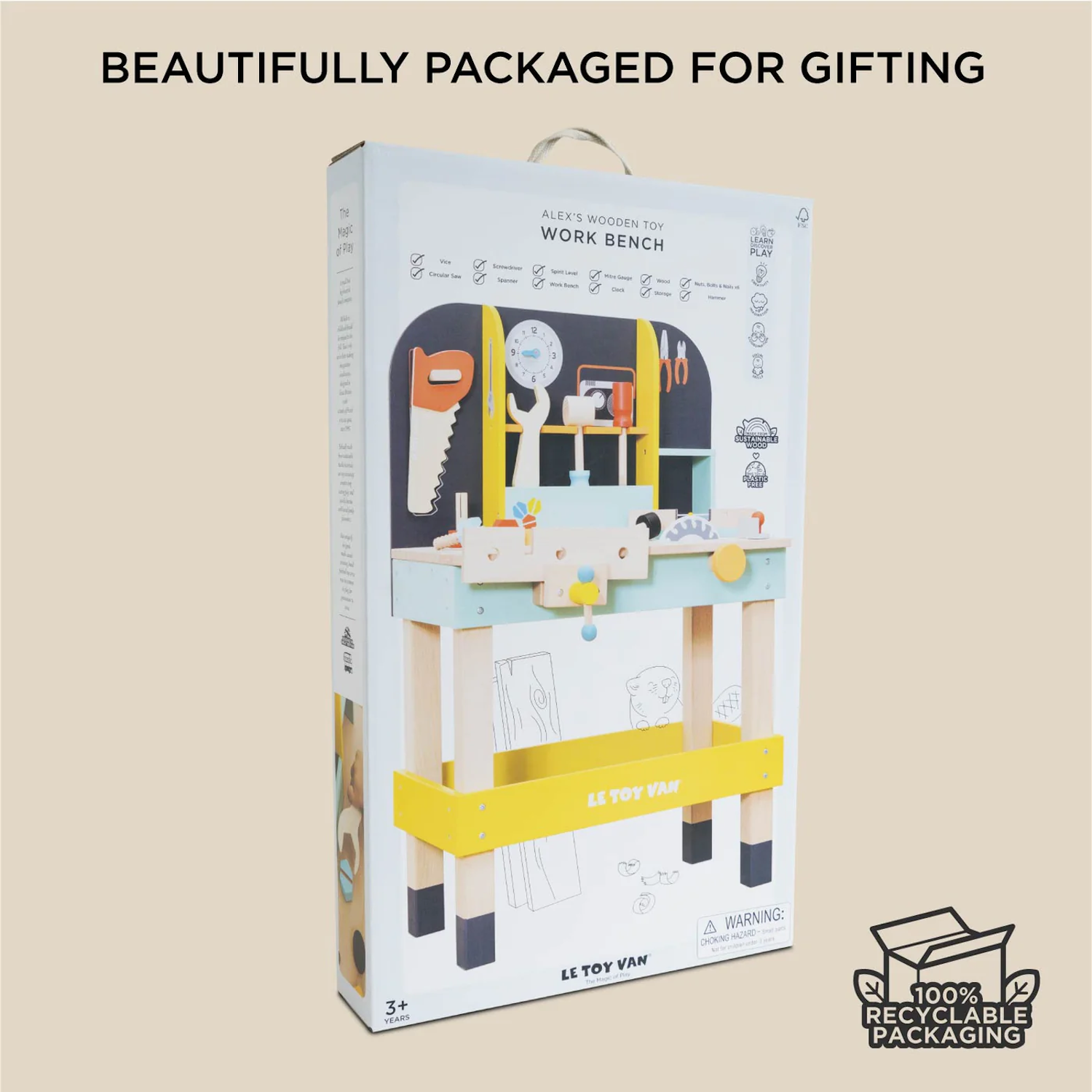This sturdy workbench is full of surprises. Part of Le Toy Van's award winning collection, this brightly coloured toy is lovingly crafted from durable and sustainable wood. Painted in non toxic water based hues, it is built to last and ready for play.