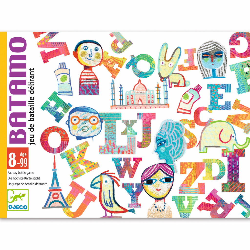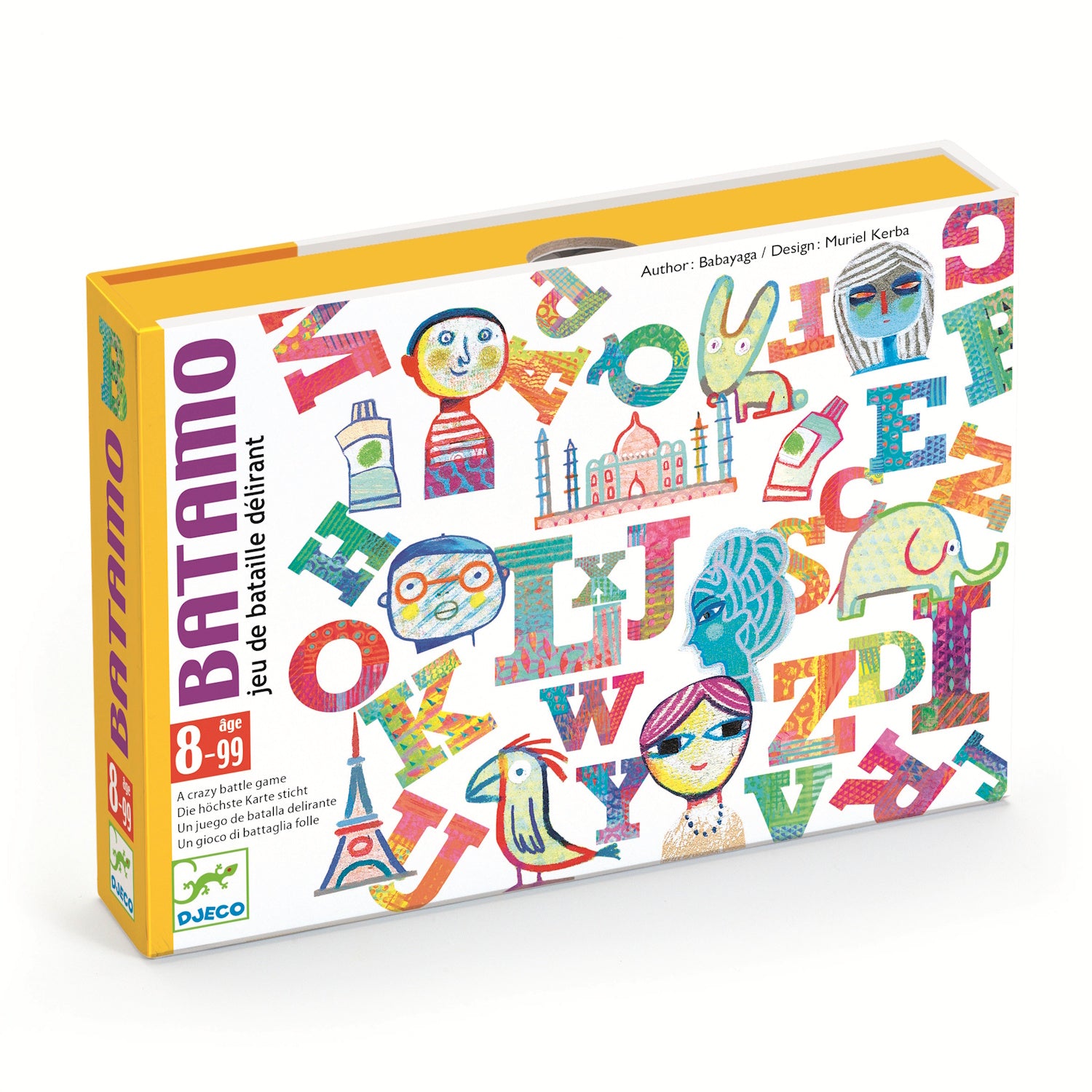 Boost vocabulary skills while having fun with Djeco Batamo, a fast-paced card game where quick thinking wins the round! Players flip cards to reveal letters, then race to be the first to shout out a word that begins with the right letter. Perfect for kids who love word challenges, this game makes learning language exciting and competitive.