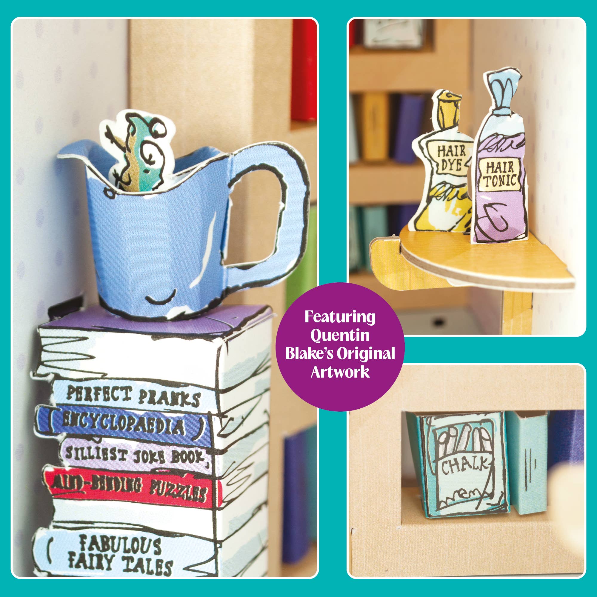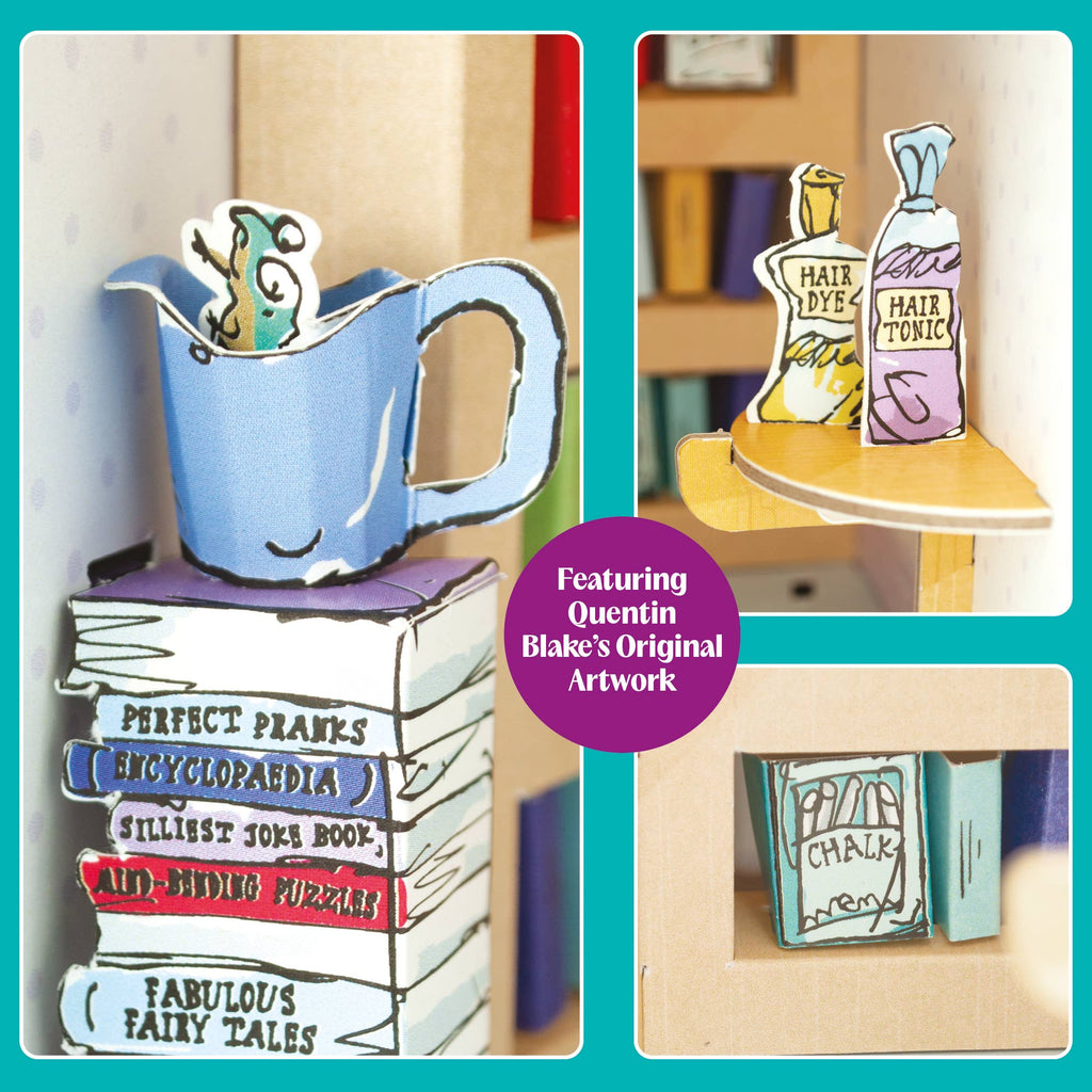 Intricate details from Quentin Blake's original artworks bring this miniature world of Roald Dahl’s much-loved story to life. Can you spot the newt, hair tonic and dye bottles, and box of chalk?