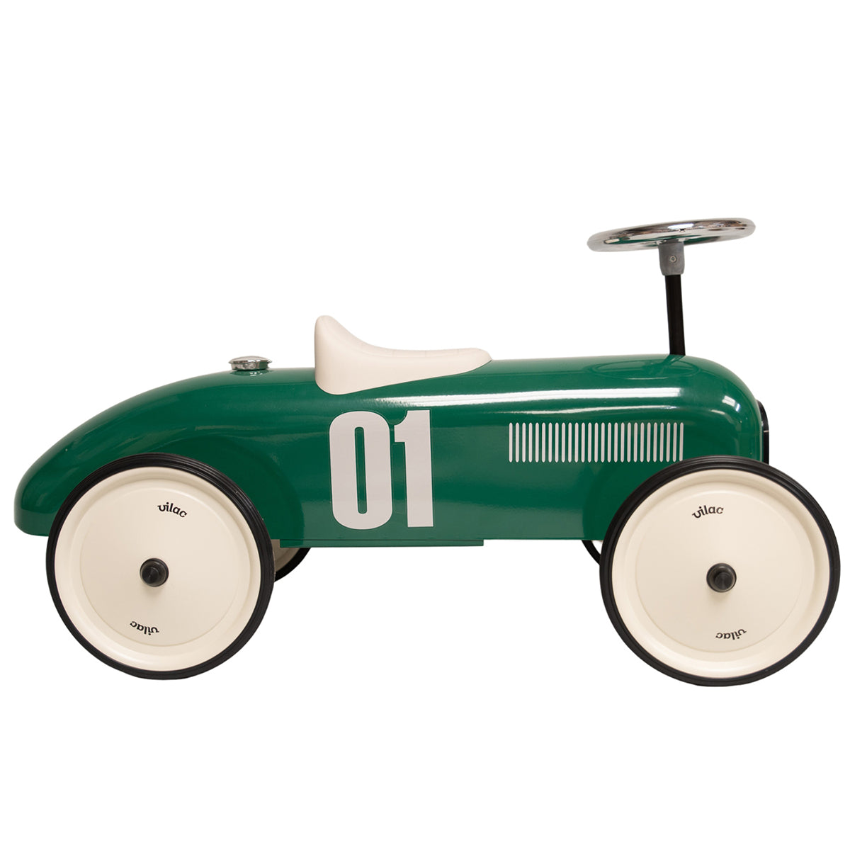 Vilac are the original designers of this classic metal ride on car. It's shape has been copied many times over. However, we are all about giving the kudos to original makers, and while others may imitate we know from experience that what is under the bonnet is what makes all the difference.