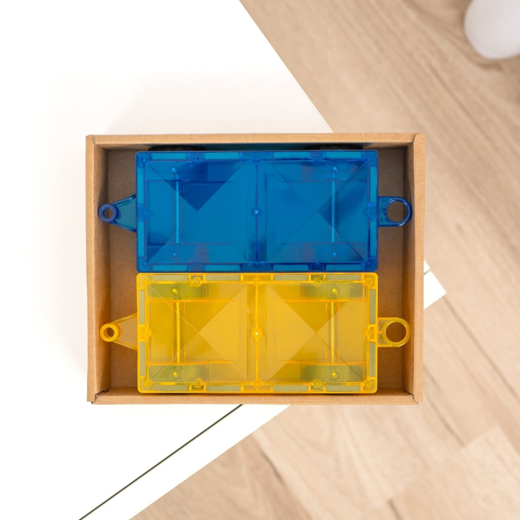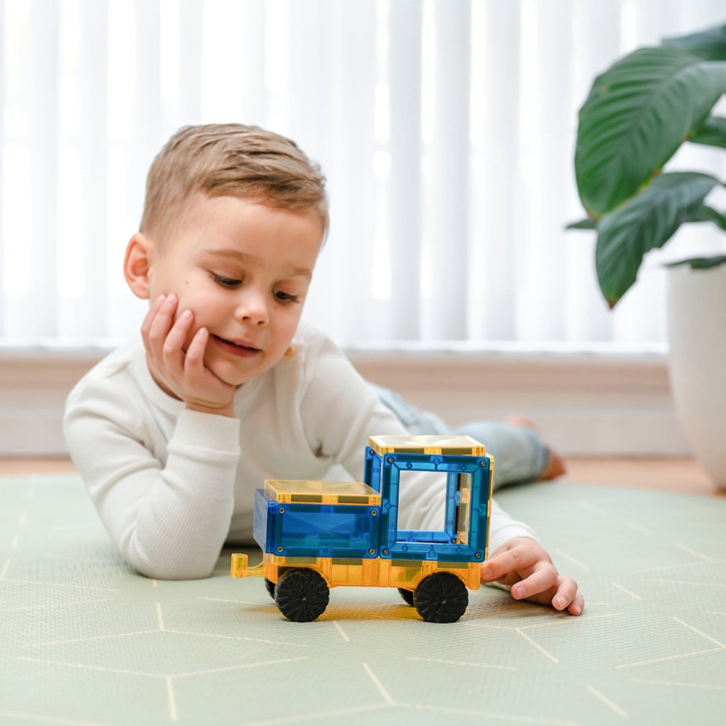 Compatible with the entire CONNETIX range, the Car Pack brings exciting new possibilities to magnetic tile play! Grow your collection and complement your CONNETIX 2 Piece Rainbow Car Pack with the CONNETIX 102 Piece Rainbow Creative Pack or the CONNETIX 60 Piece Rainbow Starter Pack to collect standard tiles of various shapes and create limitless vehicle creations.