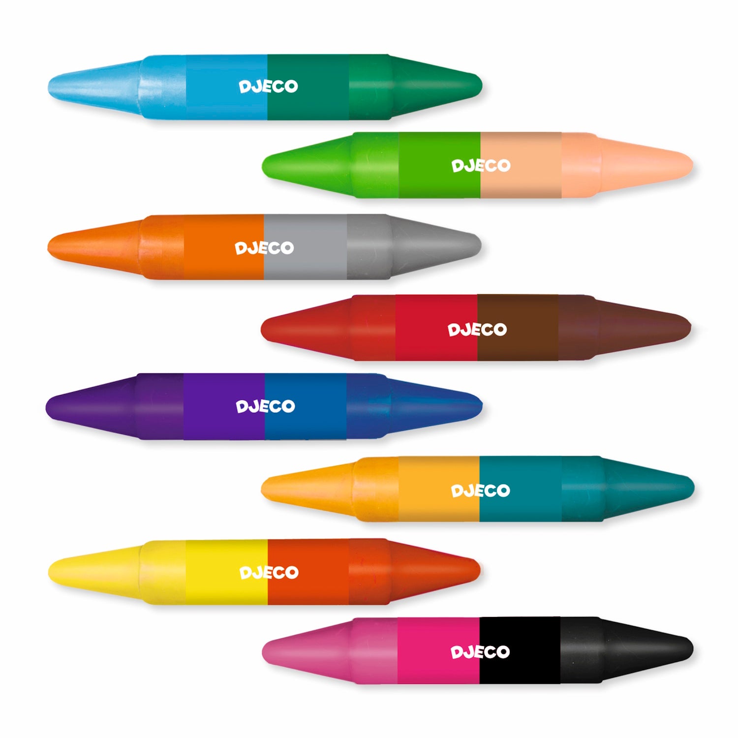 - Content: 1 box with 8 double-ended wax crayons with 16 colours