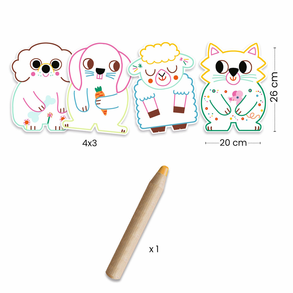 Introduce toddlers to the joy of coloring with the Djeco First Colouring – Pets set! Specially designed for little hands, this fun activity features thick, sturdy coloring cards with adorable pet illustrations, making it the perfect first step into creative play.