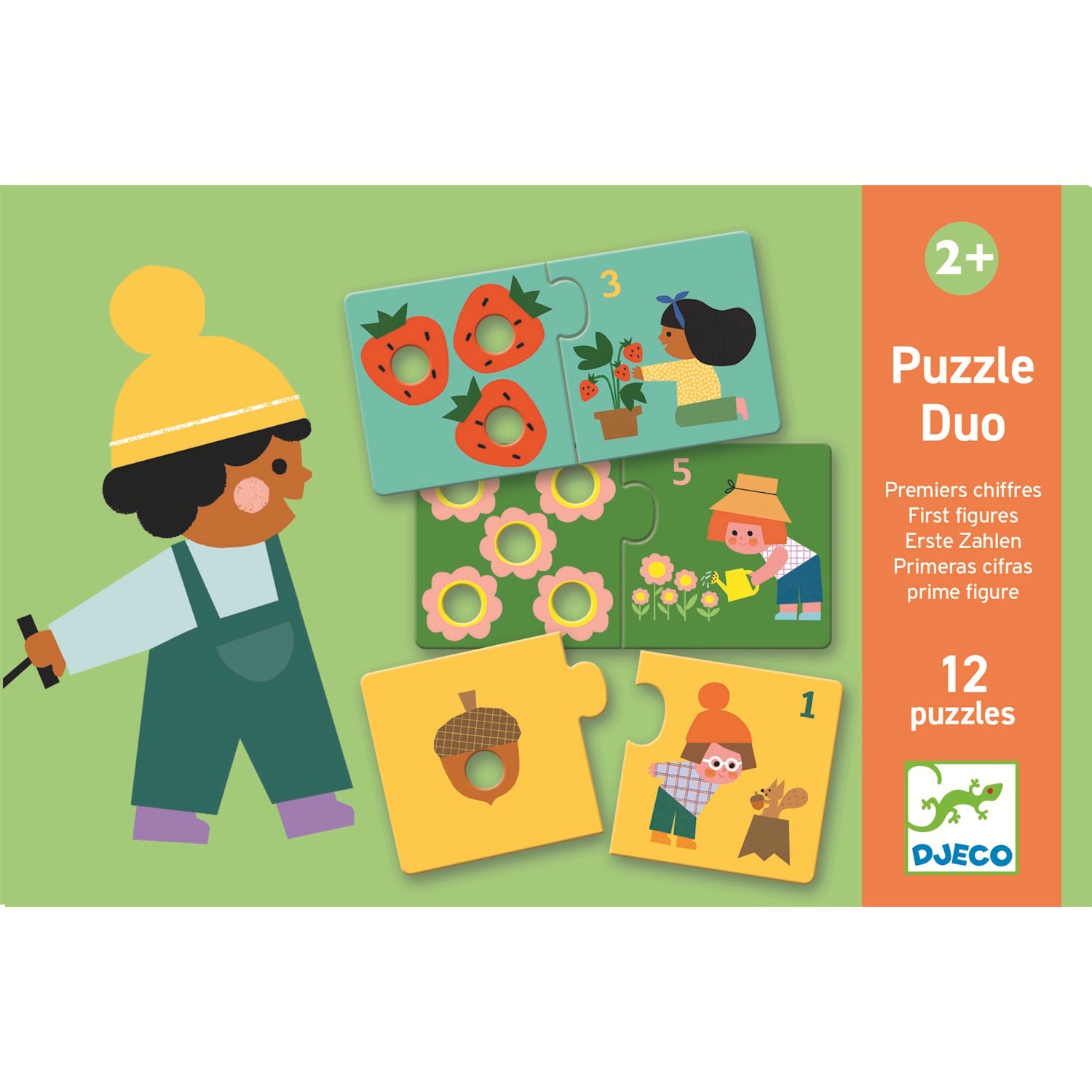 This engaging early-learning puzzle set includes 10 two-piece puzzles, each featuring a number and its matching illustration. Perfect for toddlers, it helps children recognize numbers while practicing counting in a playful, hands-on way.