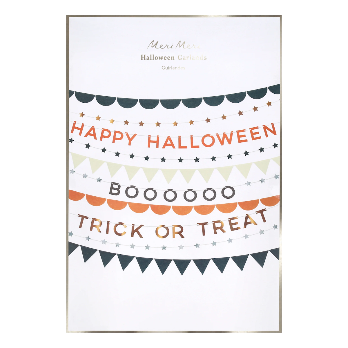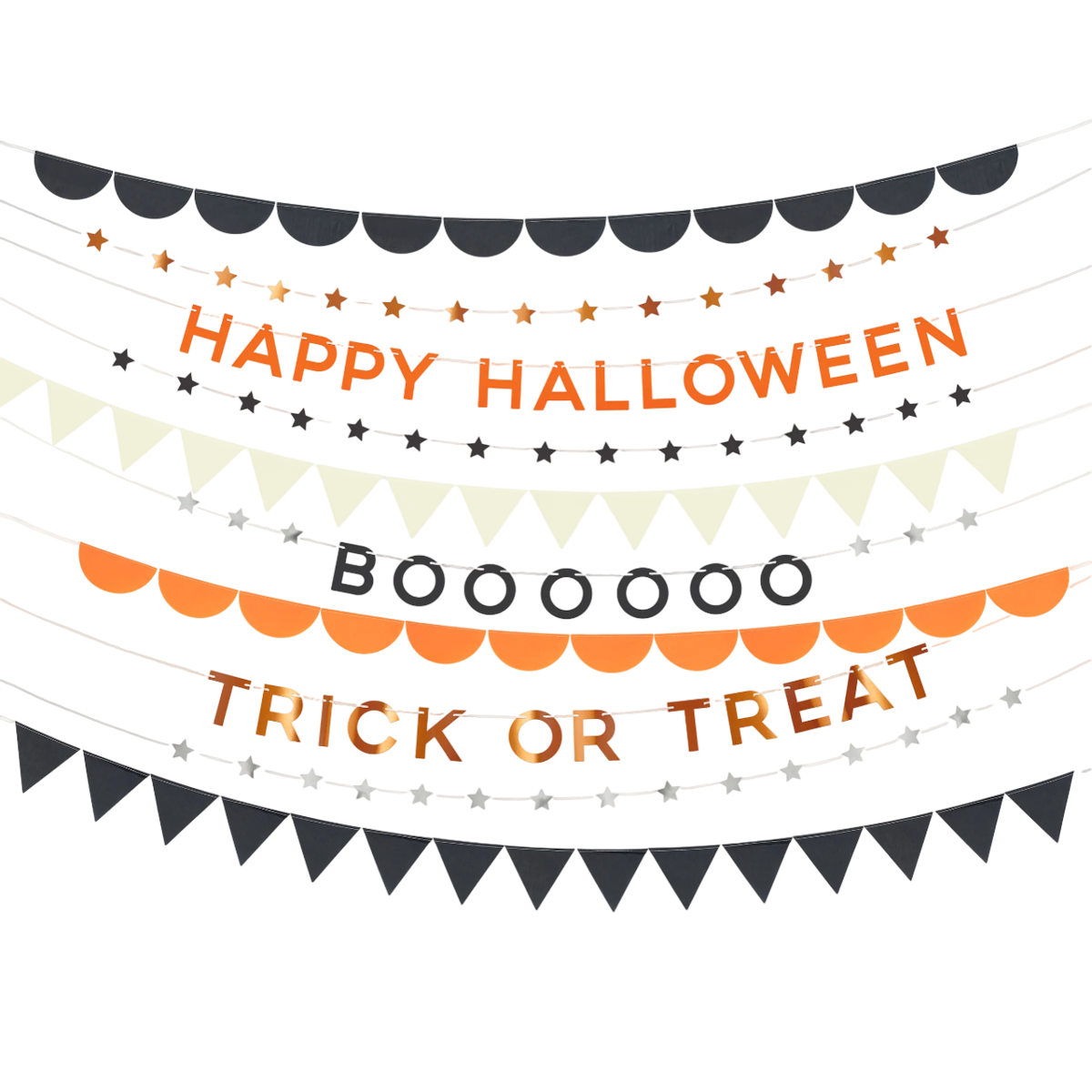 Set the scene for a scary celebration with our sensational Halloween garland set. Create a playful vibe inside or out: hang them in windows, drape them across mantels, walls, or party tables, or let them sway on the porch or from trees for a magical moonlit effect. Designed in classic Halloween shades of orange and black, with shiny copper and silver foil, they create a hauntingly good effect. Reusable and timeless, they'll be a staple in your Halloween decor year after year!