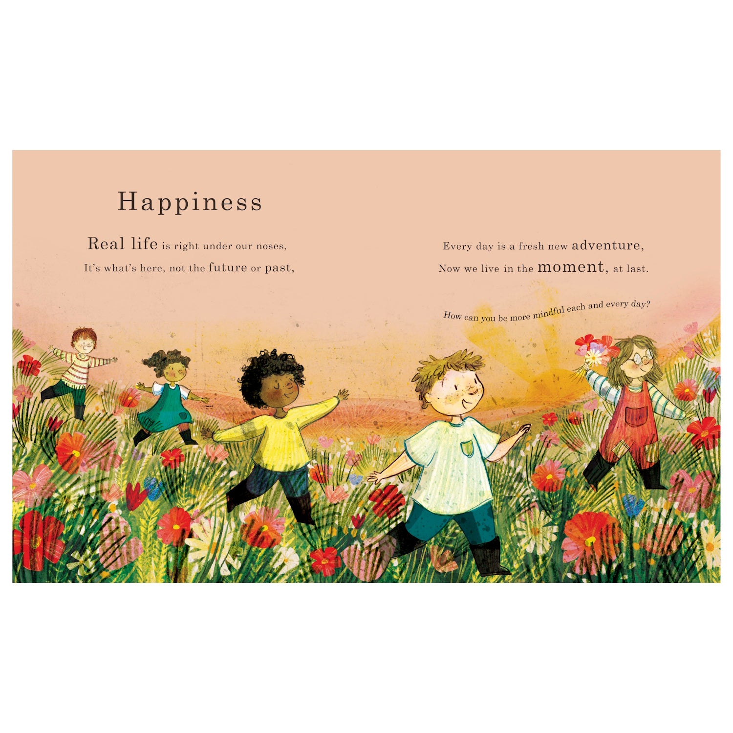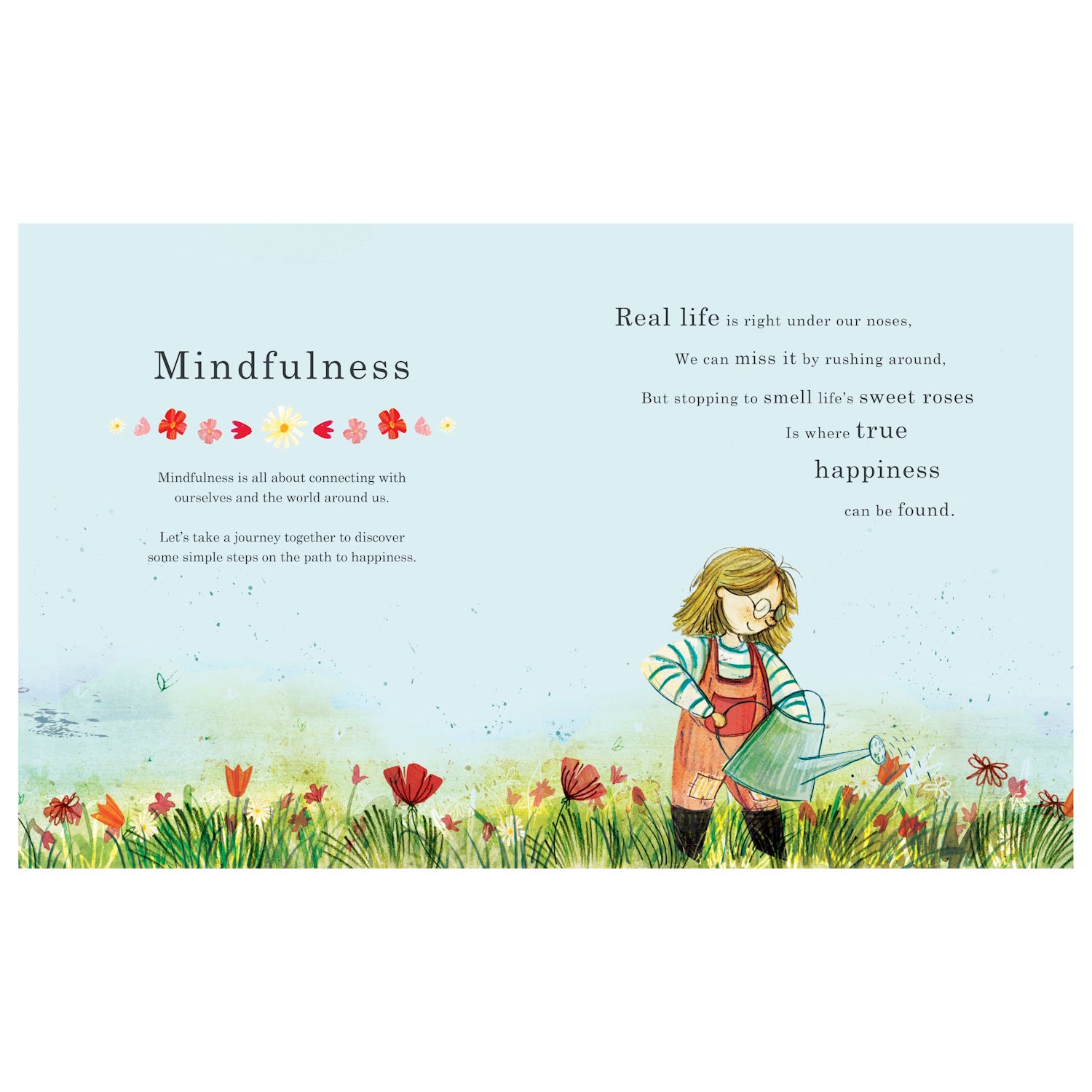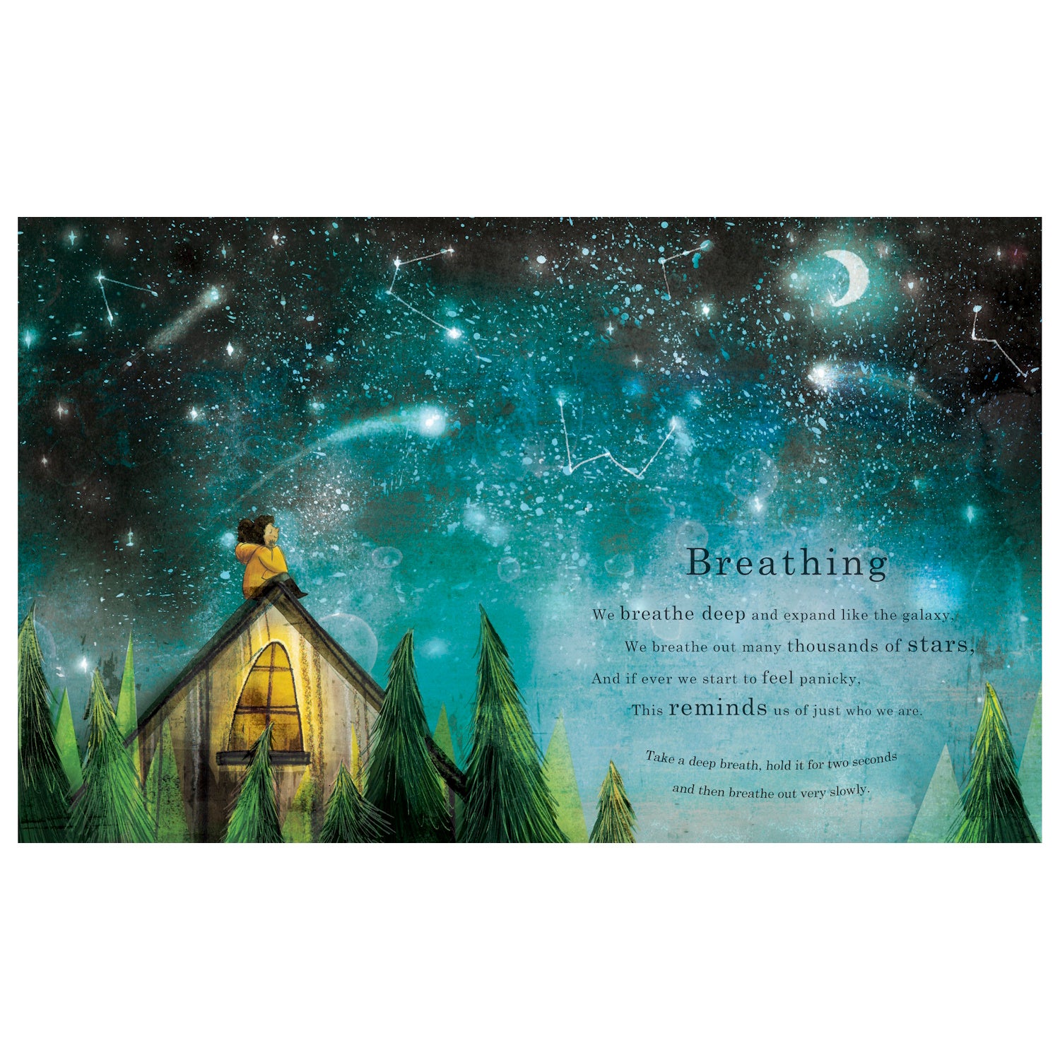 This beautiful book encourages young readers to explore their emotions and the world around them. "We breathe deep and expand like the galaxy, we breathe out many thousands of stars, and if ever we start to feel panicky, this reminds us of just who we are." This stunning poetic journey to a place of happiness and calm introduces children to the practice of mindfulness.