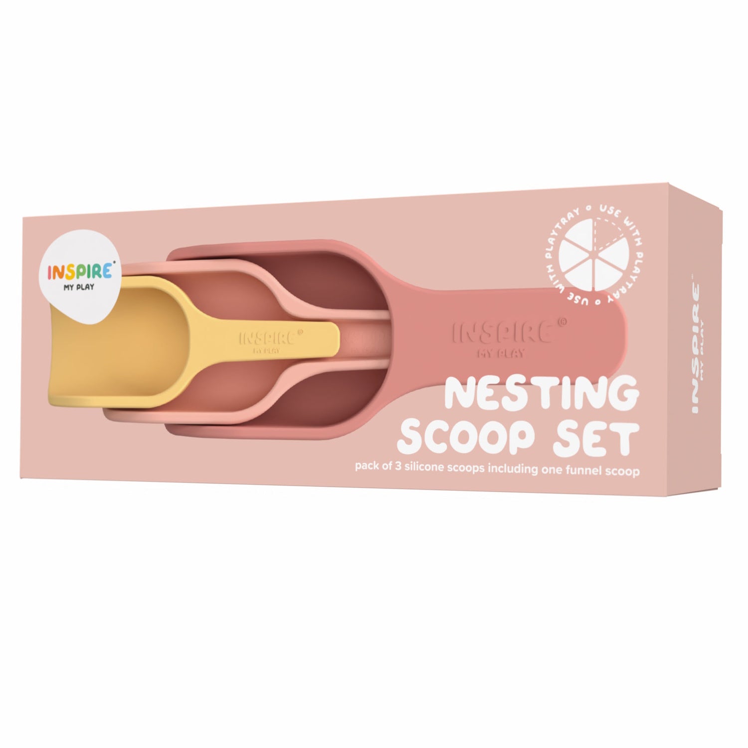 Inspire My Play Nesting Scoop Set - Coral/Yellow is backordered and will ship as soon as it is back in stock.