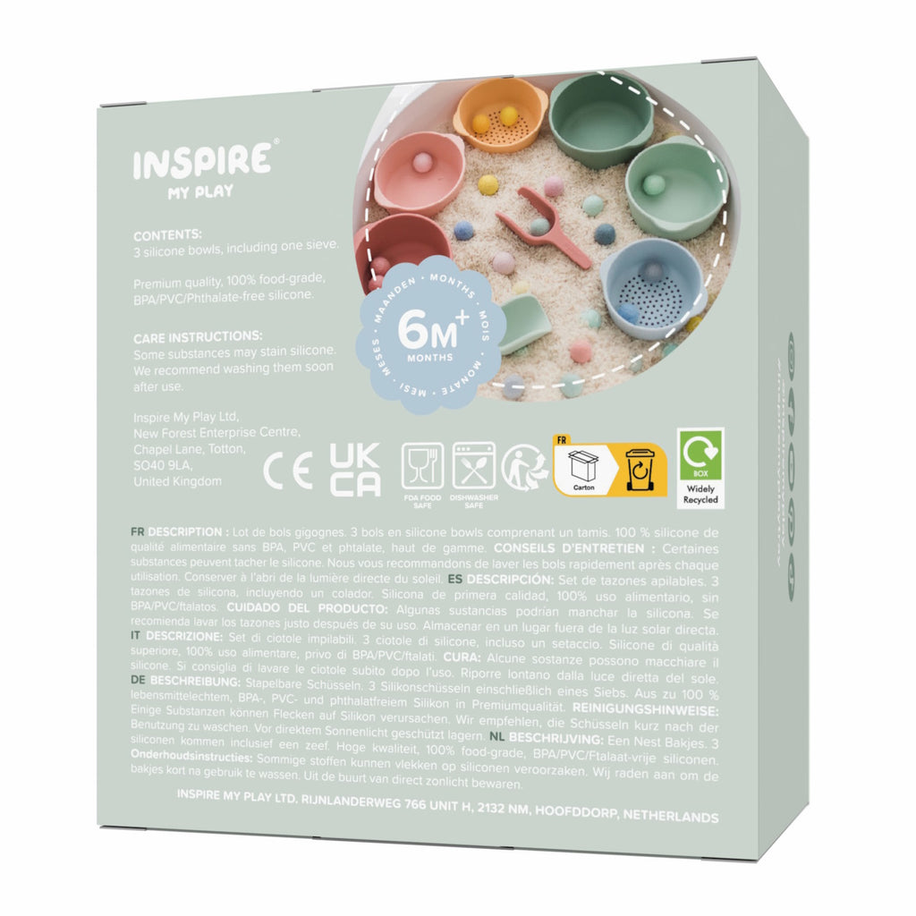 Inspire My Play Nesting Bowl Set - Green/Blue is backordered and will ship as soon as it is back in stock.