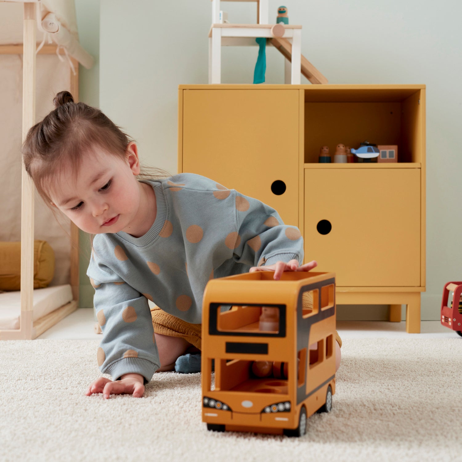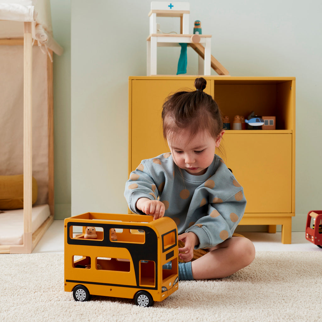 Take a seat on the double decker around the house. This bus in FSC-certified wood takes you on a tour of Aiden City.