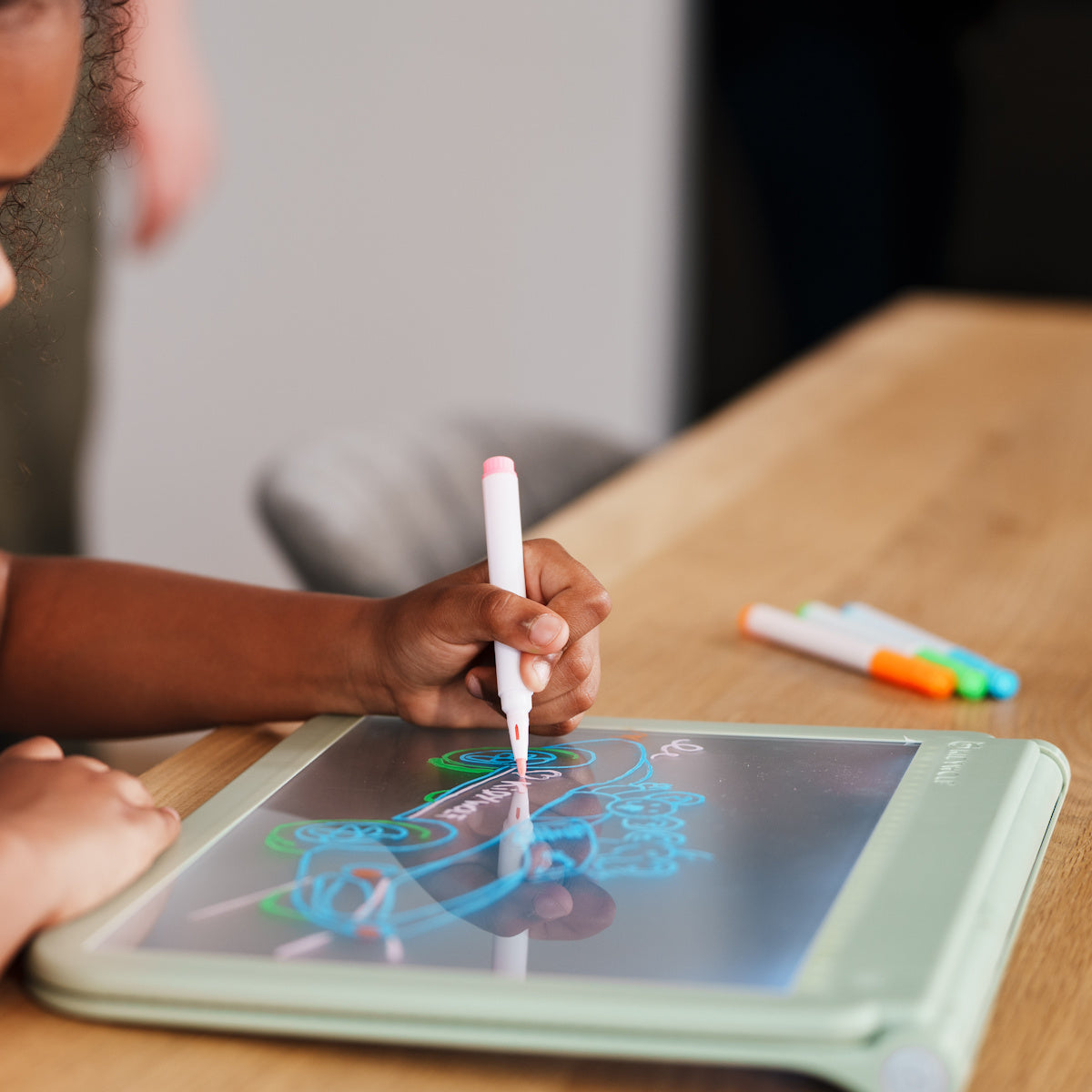 With its built-in LED backlight, pressure-sensitive surface, and easy erase function, the KIDYDRAW-PRO encourages creativity, imagination, and fine motor skills. It’s an eco-friendly alternative to paper and a portable companion for artistic adventures anytime, anywhere.