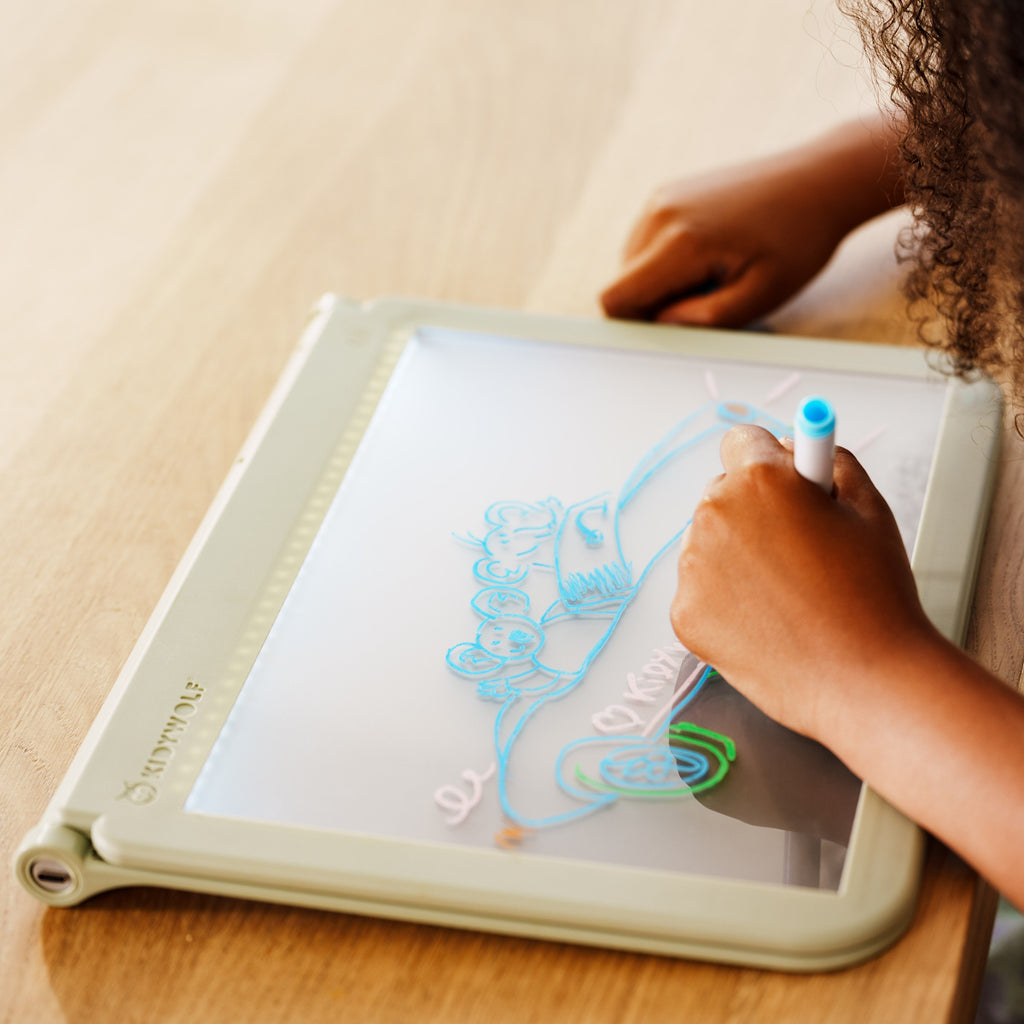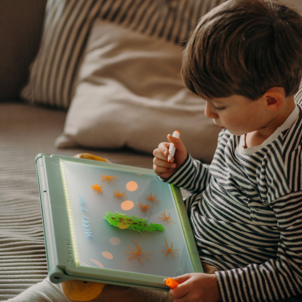 Introducing the KIDYDRAW-PRO from KIDYWOLF, an illuminated drawing tablet for kids that turns every sketch into a glowing masterpiece. Perfect for budding artists, this light-up tablet makes tracing, doodling, and designing more fun and precise, even in low-light settings!