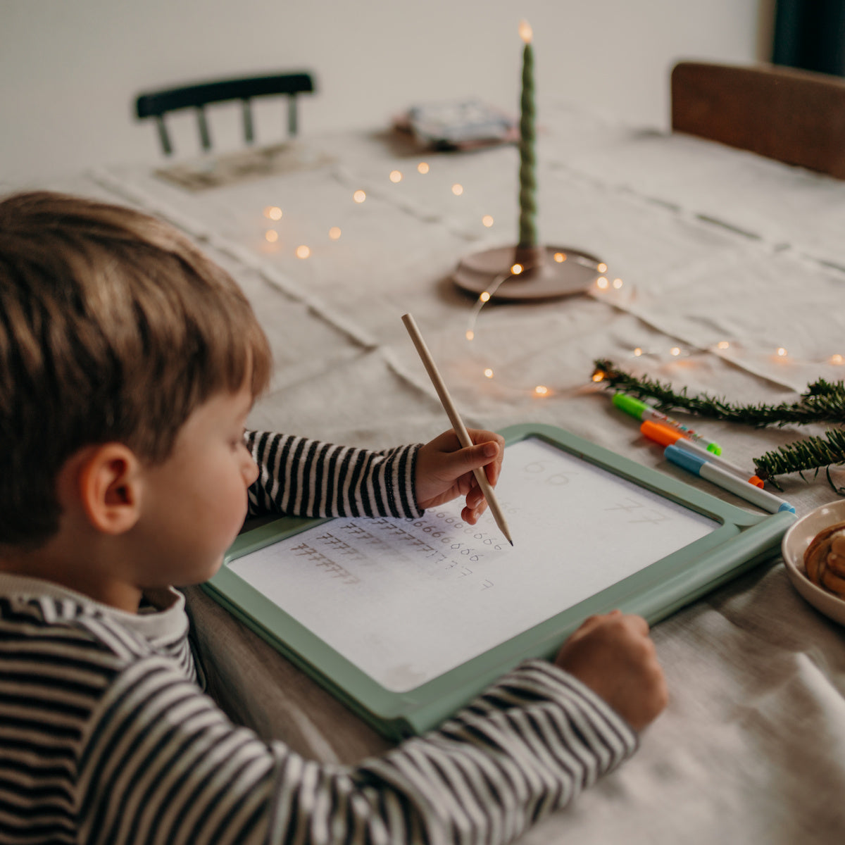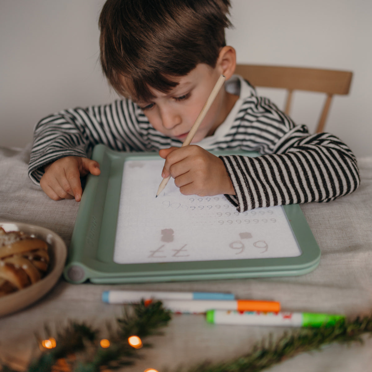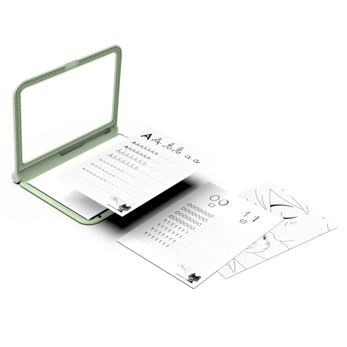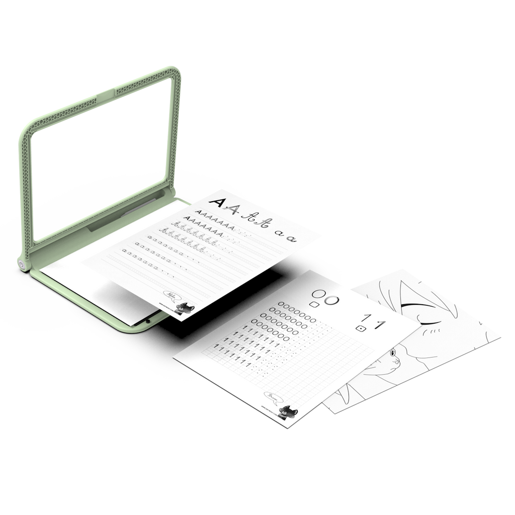 Start of learning kits (letters, numbers and drawing) Complete kit downloadable via QRCode or on website