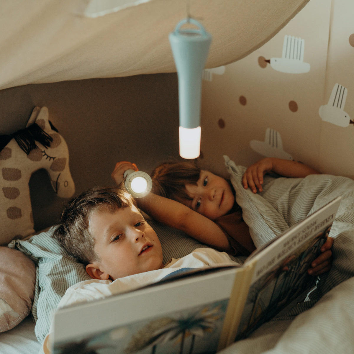 With its three distinct functions - torch, mood lamp and pendant - KIDYFLASHLIGHT can be adapted to any situation, whether for playing games, reading stories or illuminating a teepee.