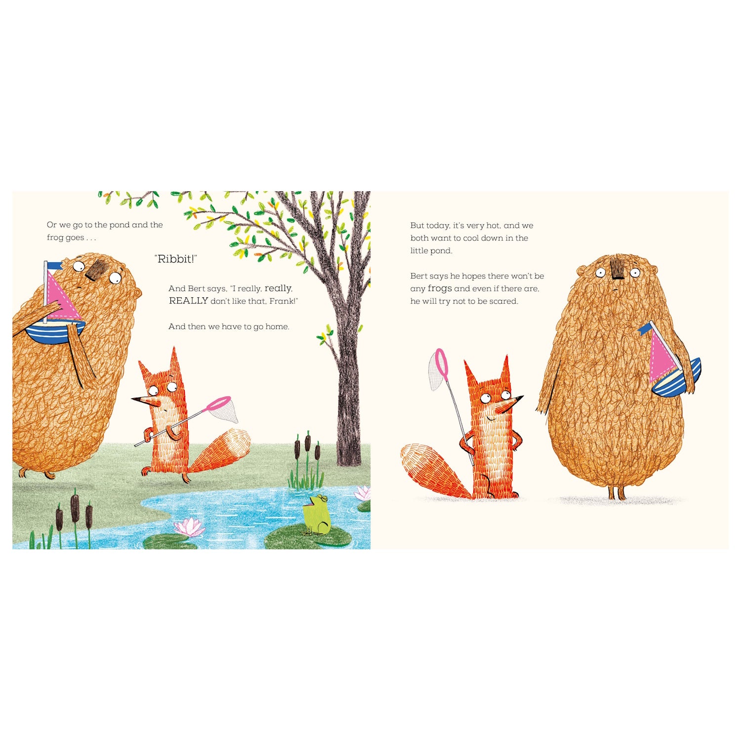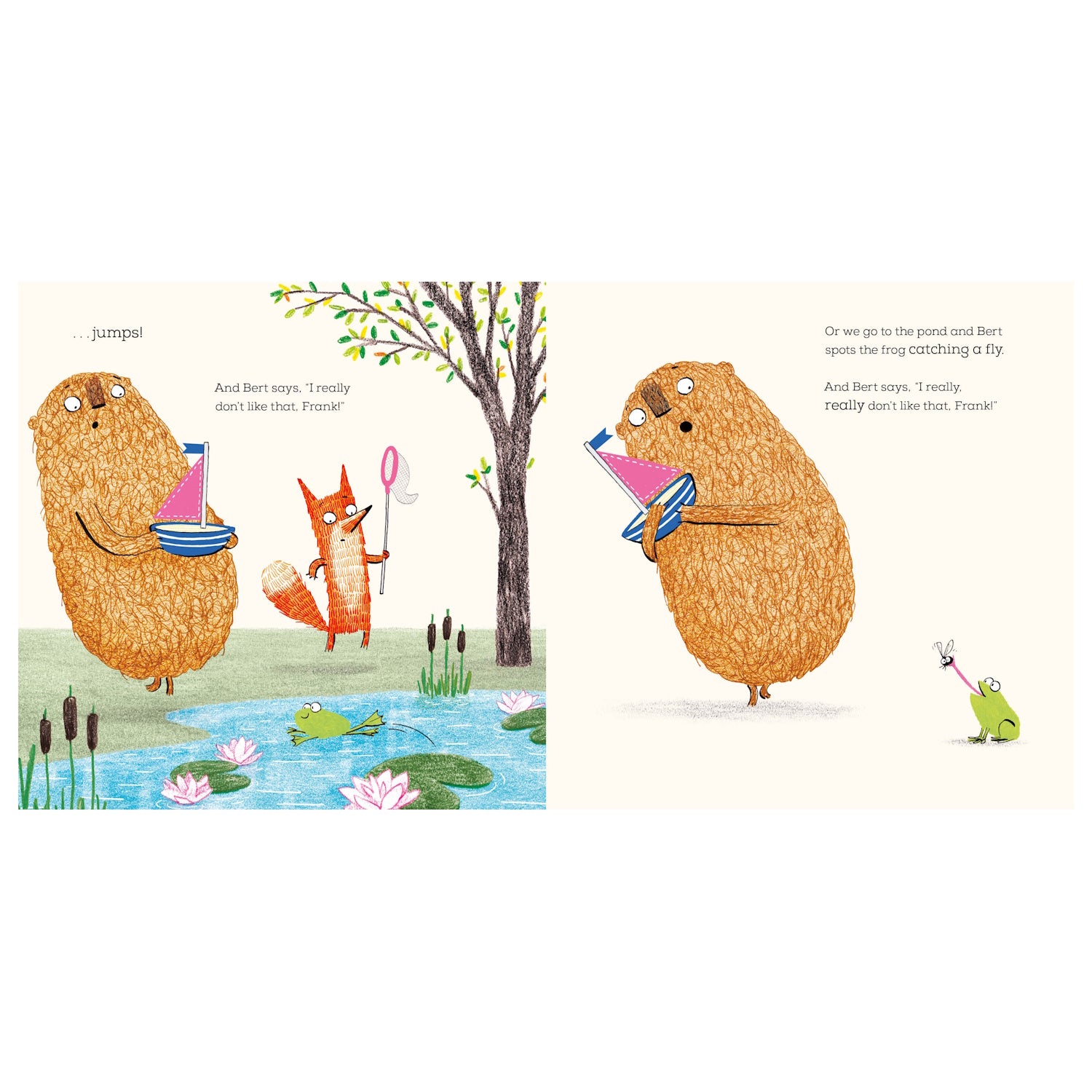 Frank and Bert love to sail Bert's toy boat on the little pond. But - oh no! - there's a frog in the pond and Bert is scared of frogs. Poor Bert! Frank wants to help his best friend - but is he just a little bit frightened too? Latest in the series.