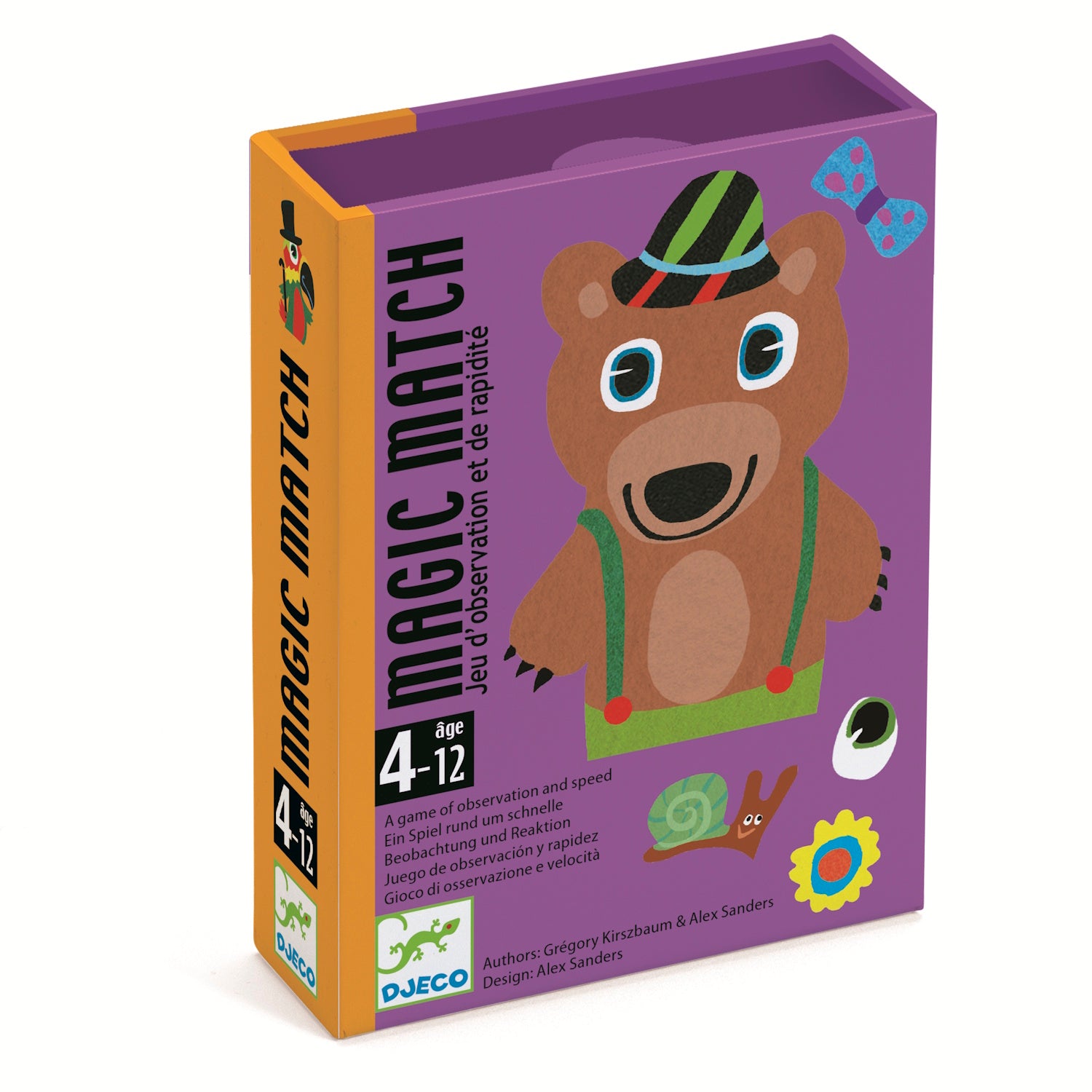 Bring magic to playtime with the Djeco Card Games – Magic Match! This enchanting card game challenges players to flip, match, and collect pairs while discovering whimsical illustrations along the way. Perfect for developing memory, focus, and observation skills, Magic Match is a delightful game the whole family can enjoy.
