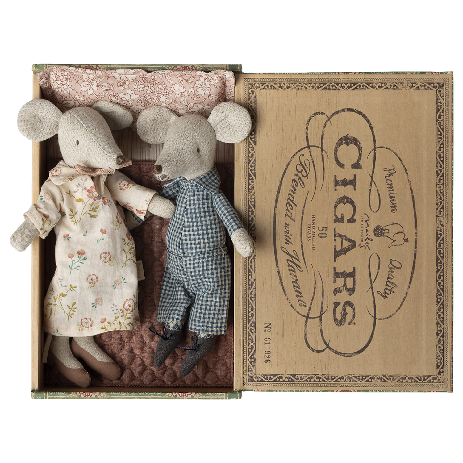 Maileg Grandma and Grandpa Mice in Cigarbox