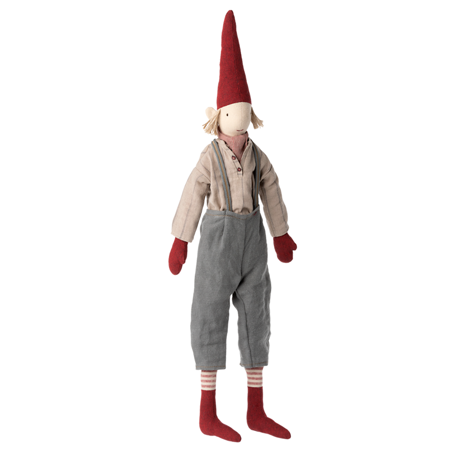 Discover the Maxi Pixies collection featuring four charming styles dressed in exclusive Christmas attire. This Size 4 Boy pixy, with his cute pants and suspenders, brings festive fun to your holiday decor. Perfect for mixing and matching across sizes and collections, these playful pixies brighten any Christmas setting with their delightful charm.