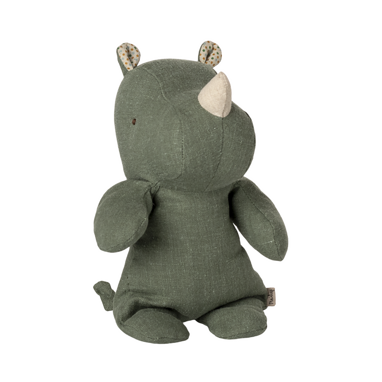 Part of the beloved Maileg Safari Friends collection, this small rhino is crafted from high-quality linen and cotton, offering a beautiful, tactile feel with heirloom-level durability. Its friendly face and Scandinavian design make it just as perfect for snuggles as it is for adding a whimsical touch to nursery décor.