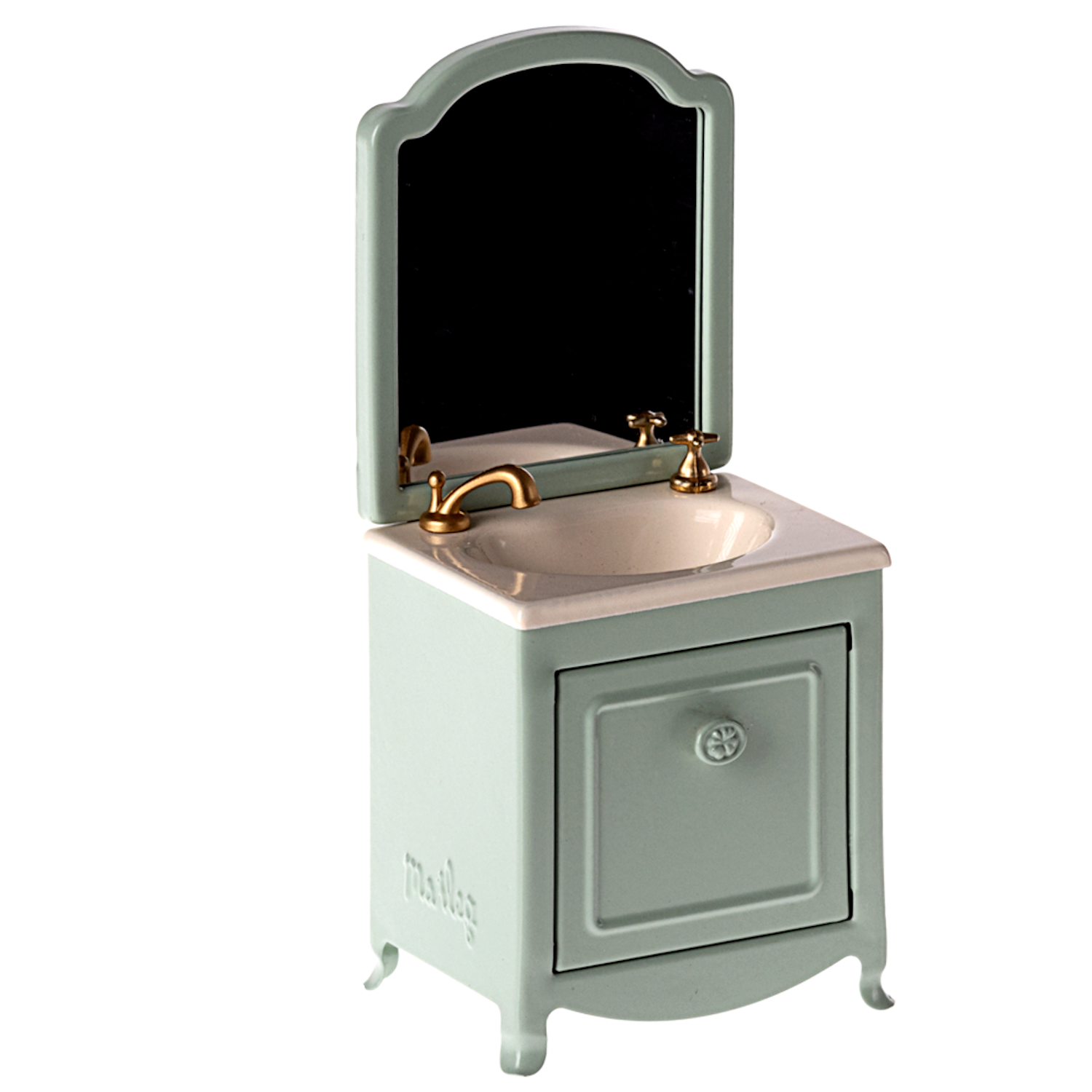 Complete your Maileg dollhouse kitchen or bathroom with the charming Maileg Sink Dresser, Mouse – Mint. This beautifully crafted miniature piece features a vintage-style sink set into a soft mint-coloured cabinet with opening doors — perfect for storing tiny accessories and creating realistic play scenes.