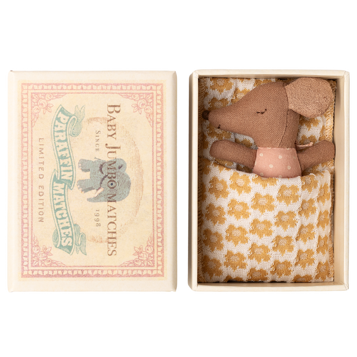 Maileg Sleepy Wakey Baby Mouse in Matchbox - Rose
