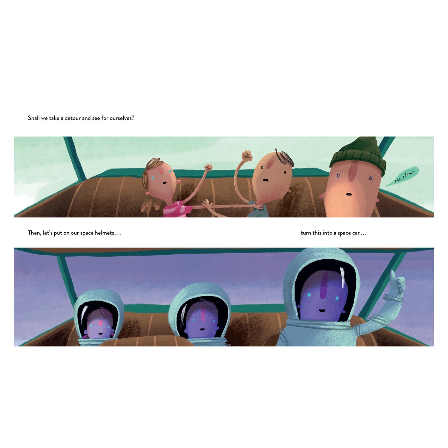 Blast off with Dad and discover the cosmos through Oliver Jeffers's wonderfully witty lens. This stellar adventure whisks two curious children into the vast expanse of space, where they pause to contemplate Earth and the remarkable (and sometimes messy) story of humanity unfolding below. Part cosmic journey, part world history, part universe tour guide – all wrapped up in Jeffers's signature charm and imaginative illustrations. A book that makes you giggle, wonder, and see our planet with fresh eyes.