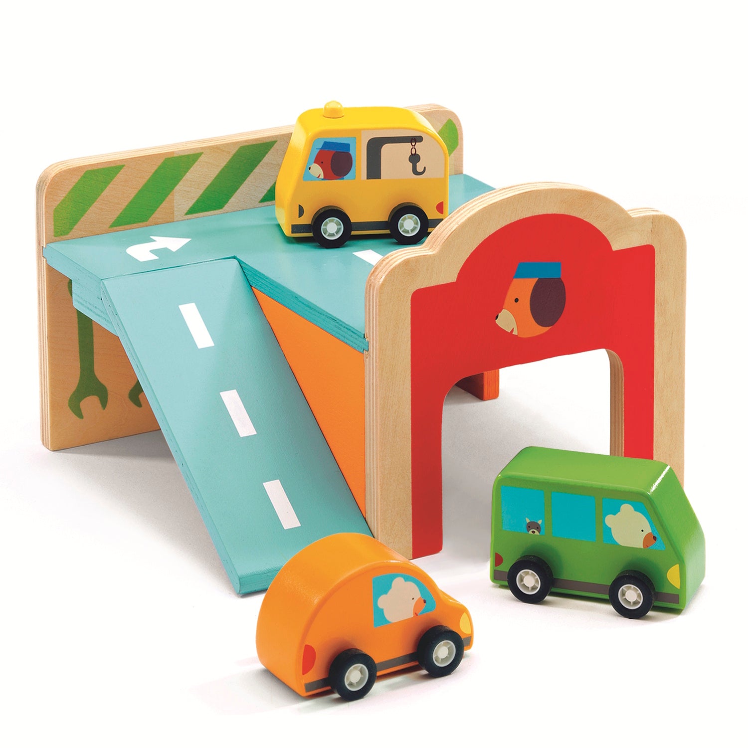 Rev up imaginative play with the Djeco Wooden Toys – My First Minigarage. This beautifully crafted wooden playset includes a colorful mini garage, ramps, and chunky wooden cars perfectly sized for little hands. Designed to spark creativity, it encourages toddlers to role-play, drive, park, and zoom their cars while developing coordination and motor skills.