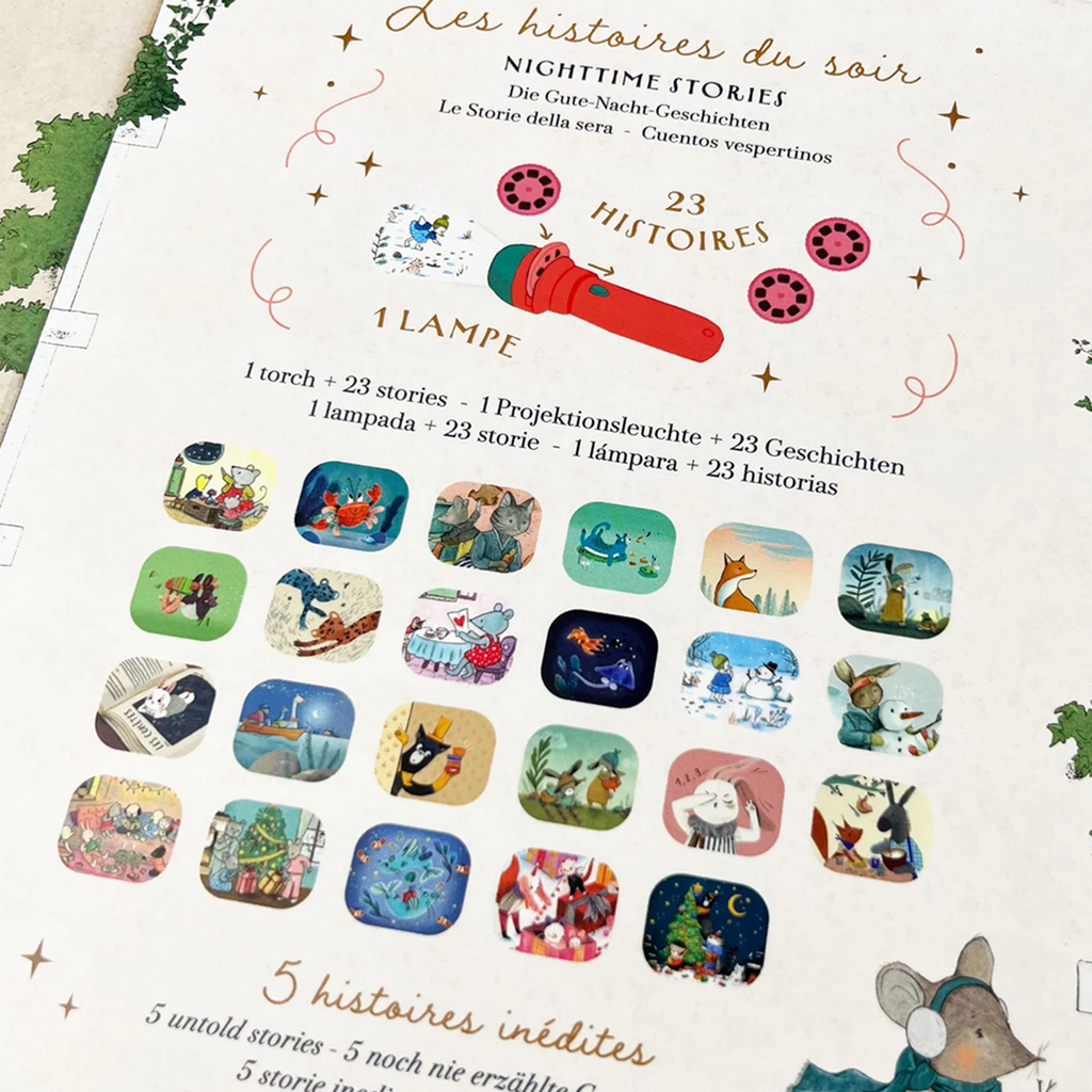 From the moment you open the first window, you'll discover a story lamp, followed by 23 discs hidden in the days that follow. Each disc reveals a new adventure to project each evening, leading up to the eagerly awaited Christmas Eve.