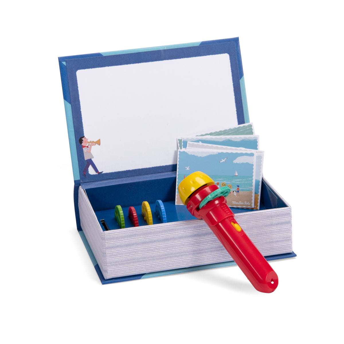 A beautifully illustrated gift box which opens like a gorgeous book so you can project your stories on to the inside cover. Inside discover a story torch and 5 story discs on the theme of special adventures. You'll also find 5 of the sweetest postcards too.