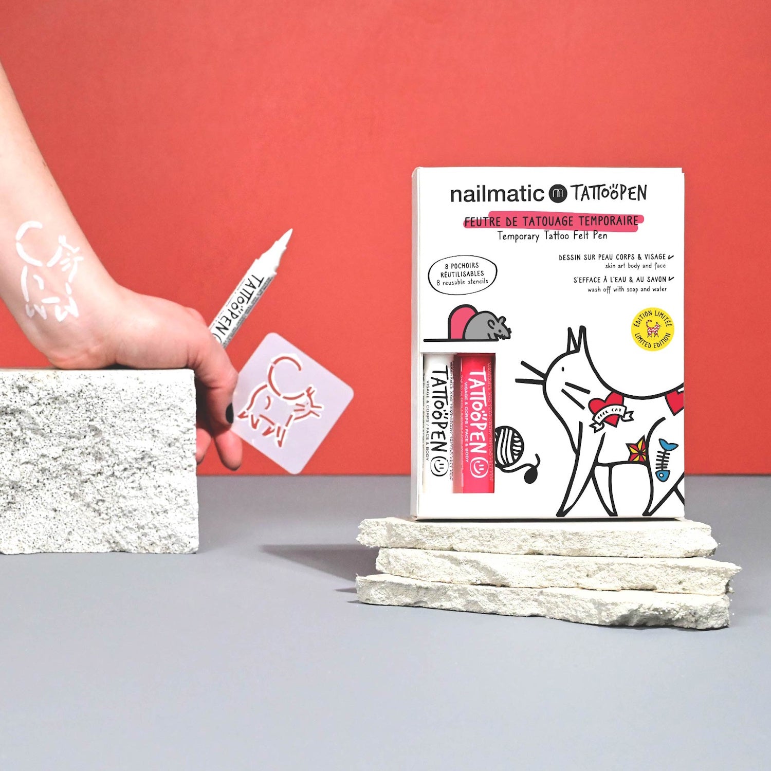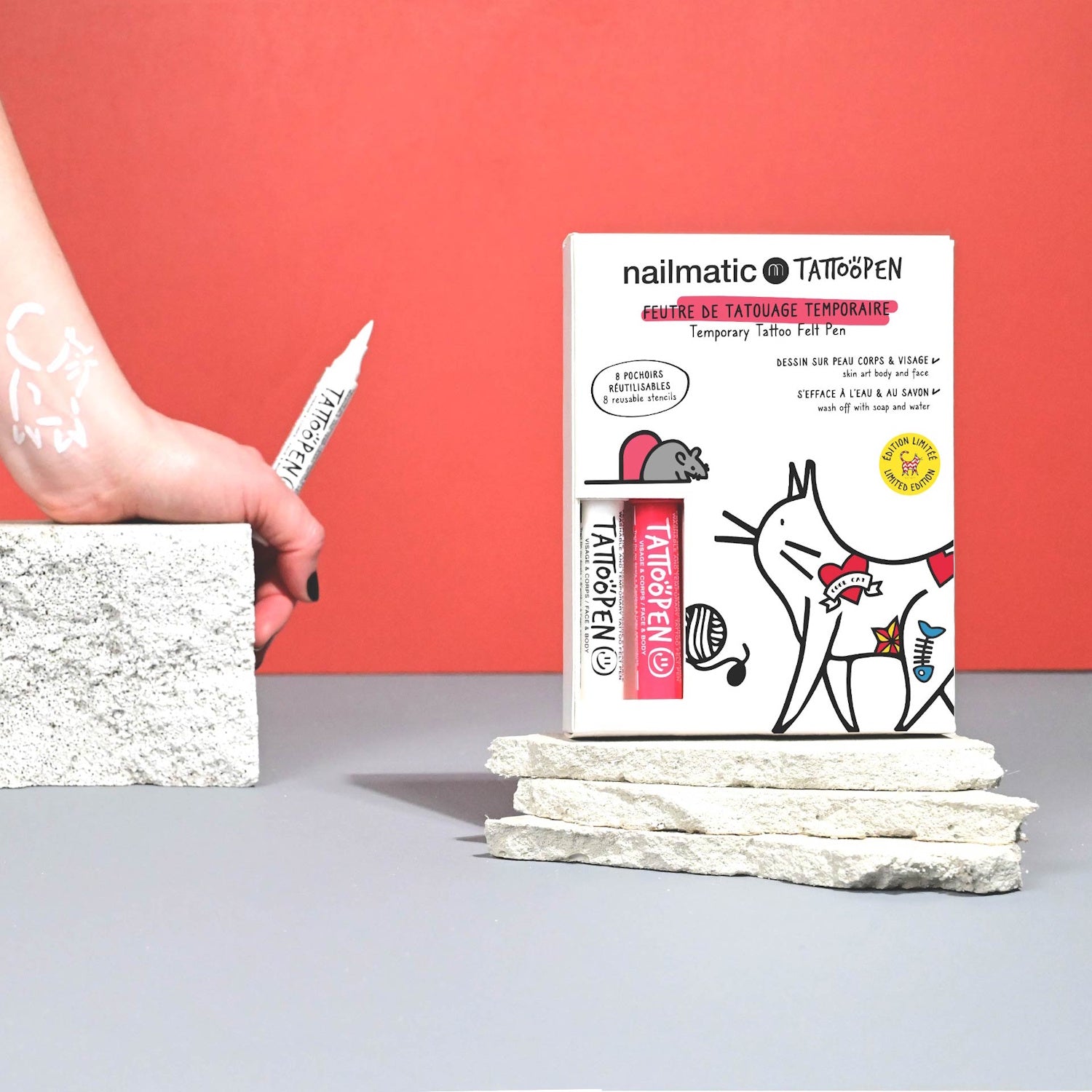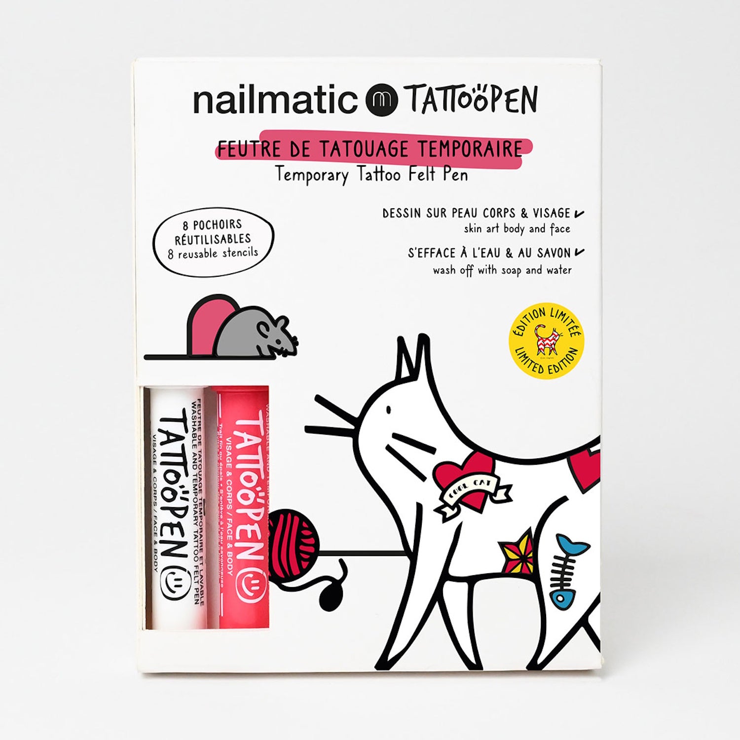 Nailmatic Tattoo Pen Set - Limited Edition Cat is backordered and will ship as soon as it is back in stock.