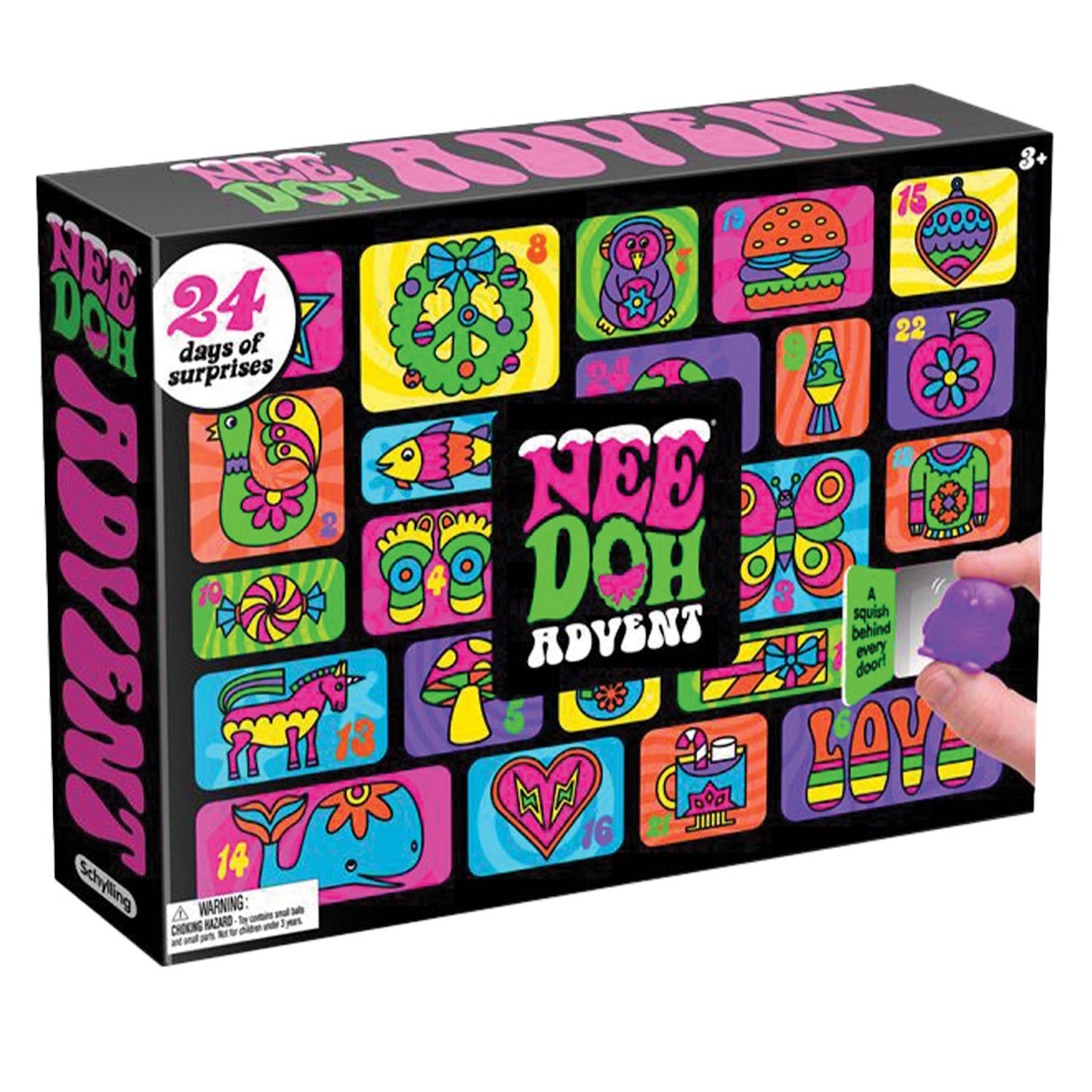 Celebrate the holidays with a daily dose of fun from the NeeDoh Advent Calendar! Open each door to uncover a bright and colorful mini NeeDoh toy, with squishies, new shapes, and groovy textures waiting every day. The 24 surprises inside, are a super fun way to keep the holiday spirit groovy!