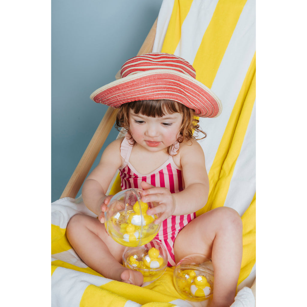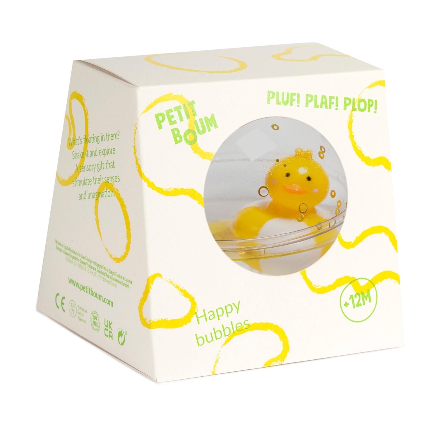 Make carpet time, tummy time, bath time or pool time more fun with Petit Boum's Happy Bubbles sensory toy featuring new characterful "Duckies" in floating bubbles. Encourages concentration, fine motor skills, and playful exploration. (Splish splash, it's a playful bath bash!)