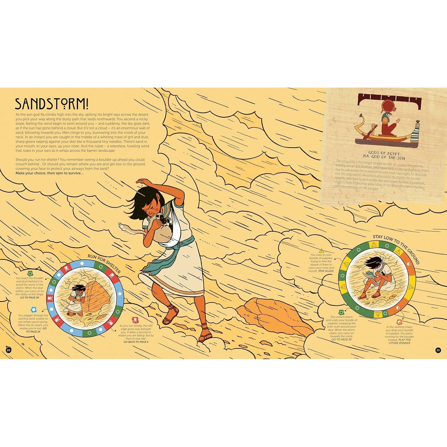 Step into ancient Egypt’s mysteries with Pharaohs Curse (Spin to Survive)! After Pharaoh Rameses’ final rest, a stolen scroll sparks a daring chase through the Valley of the Kings. Decode hieroglyphs, dodge crocodiles, and outwit desert threats using your cleverness and the thrilling survival spinner. Every spin shapes your adventure — will you protect the treasures or fall to the curse? Get ready for a playful race against time where every choice counts!