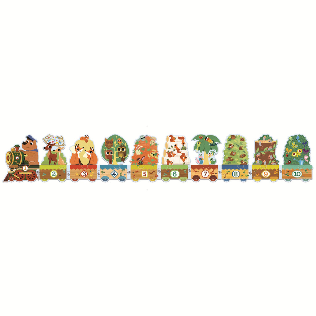 This 120 cm panoramic puzzle turns counting into an adventure, as a cheerful crew of forest animals lines up in order. One bear, two deer, three foxes... and so on, all the way to ten—because even woodland creatures like a bit of organisation!