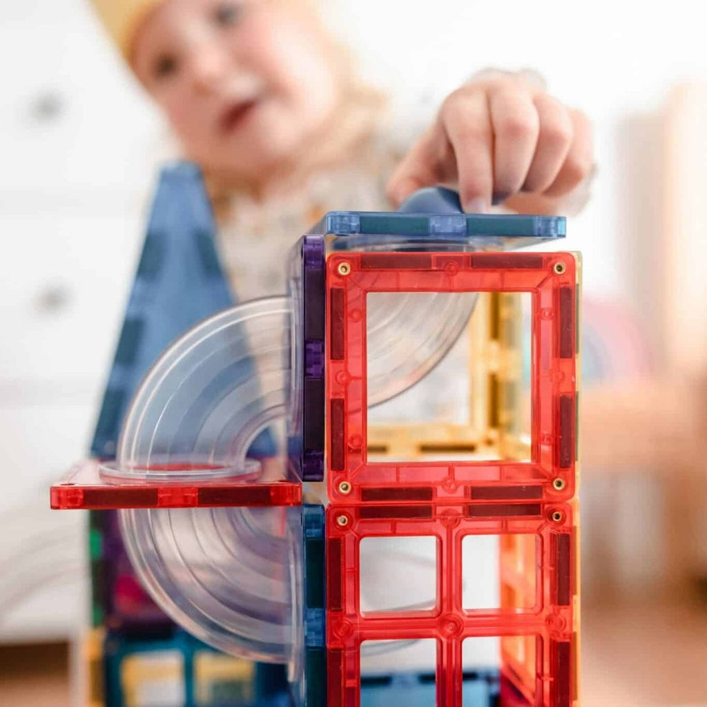 As an open-ended quality toy, CONNETIX will grow WITH your child as they learn and their play becomes more complex. Complement your Ball Run Expansion Pack with our 42 Piece Rainbow Square Pack and Blue & Green Base Plates Pack to take your ball run creations to the next level.