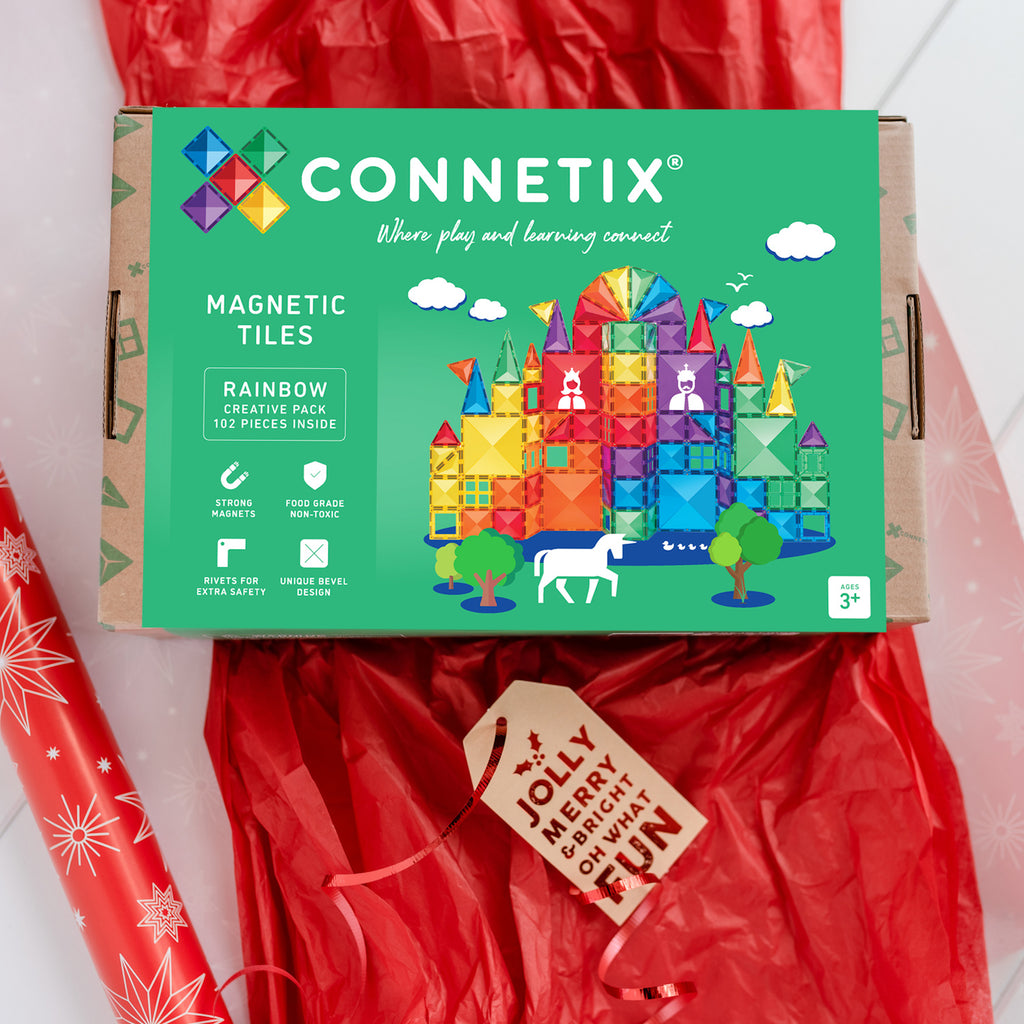 As an open-ended quality toy, CONNETIX will grow WITH your child as they learn and their play becomes more complex. Expand your collection and complement your CONNETIX 102 Piece Rainbow Creative Pack with the CONNETIX 60 Piece Rainbow Starter Pack and CONNETIX 42 Piece Rainbow Square Pack to collect every shape in every colour – or take your magnetic tile play fun to the next level with our unique CONNETIX 92 Piece Rainbow Ball Run Pack!