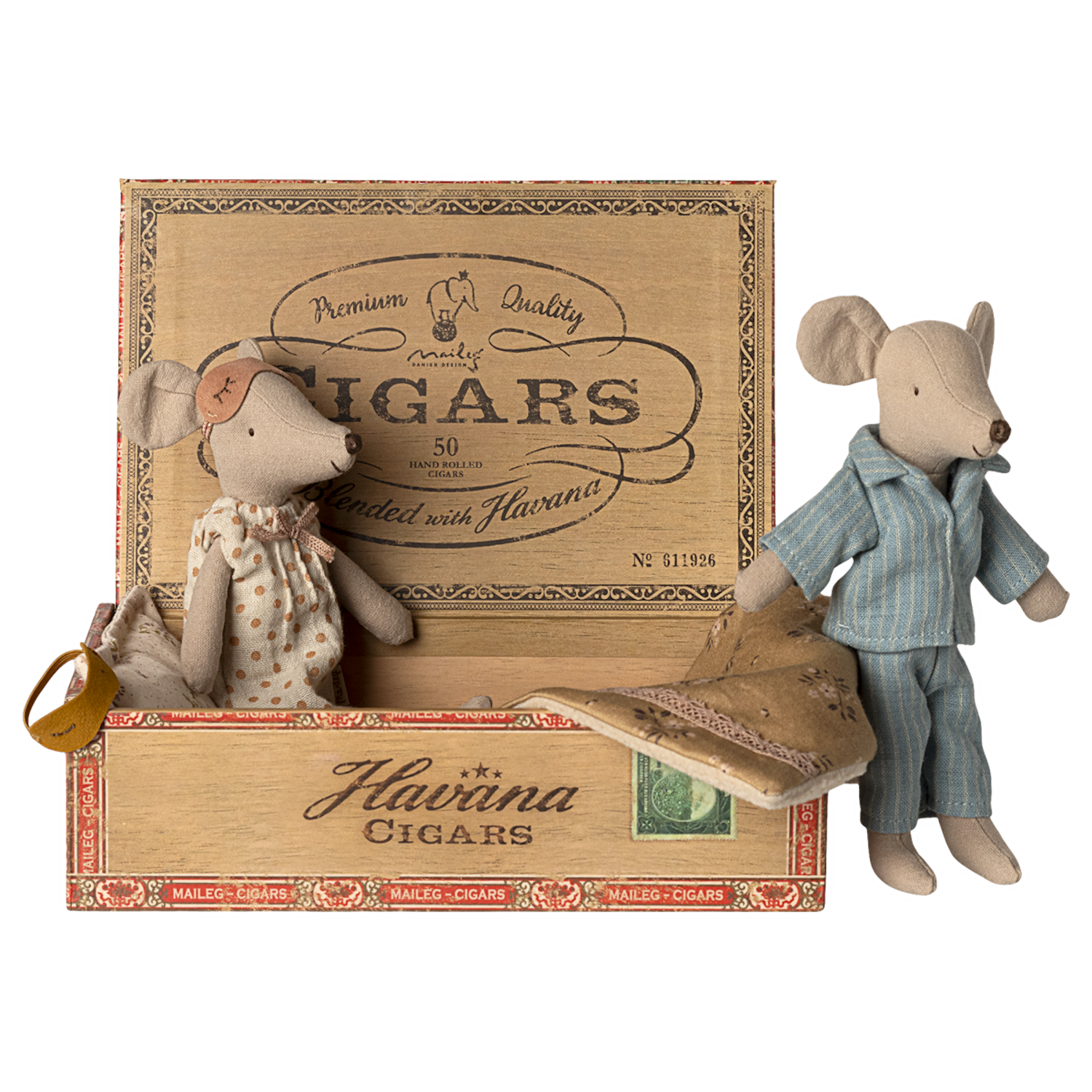 Crafted from premium, soft fabrics with Maileg’s signature attention to detail, Mum & Dad Mice are perfect for storytelling, imaginative play, or as a whimsical display piece. The beautifully designed cigarbox doubles as their bedroom, making this set both playful and practical.